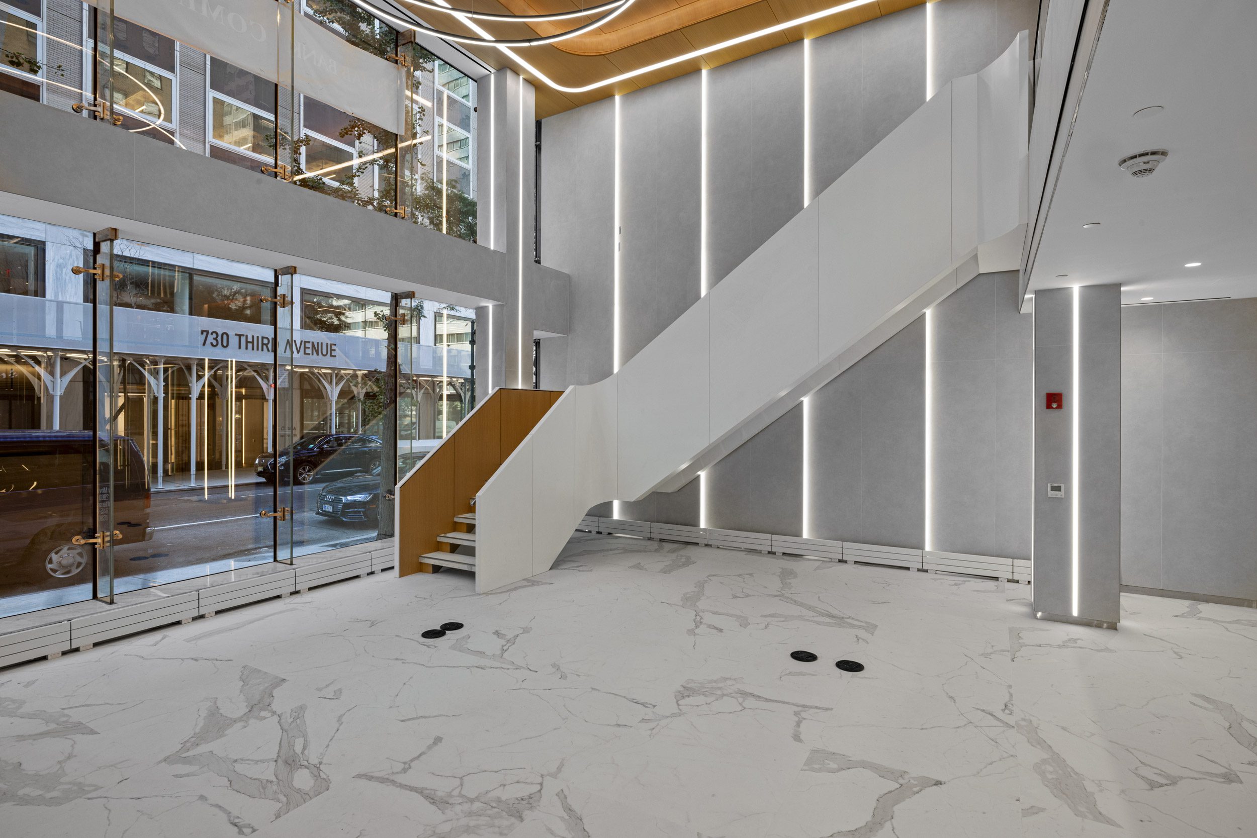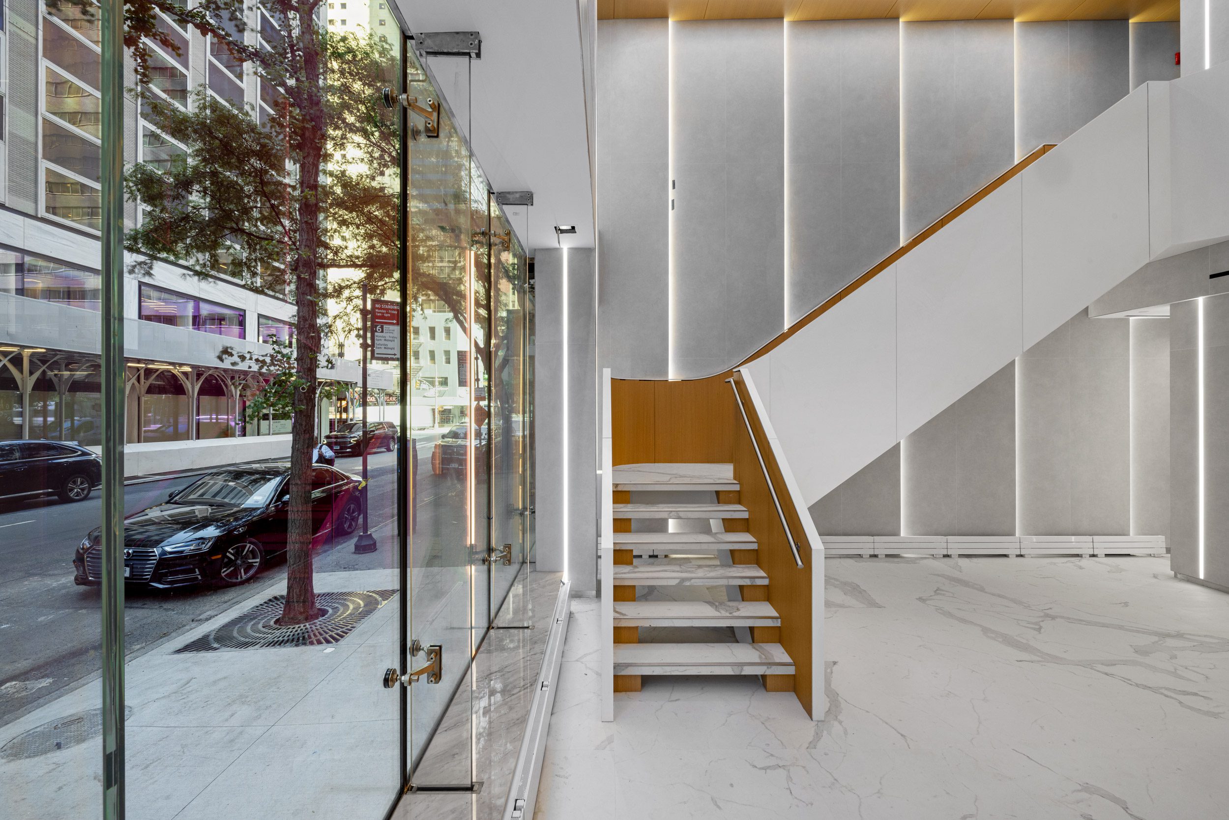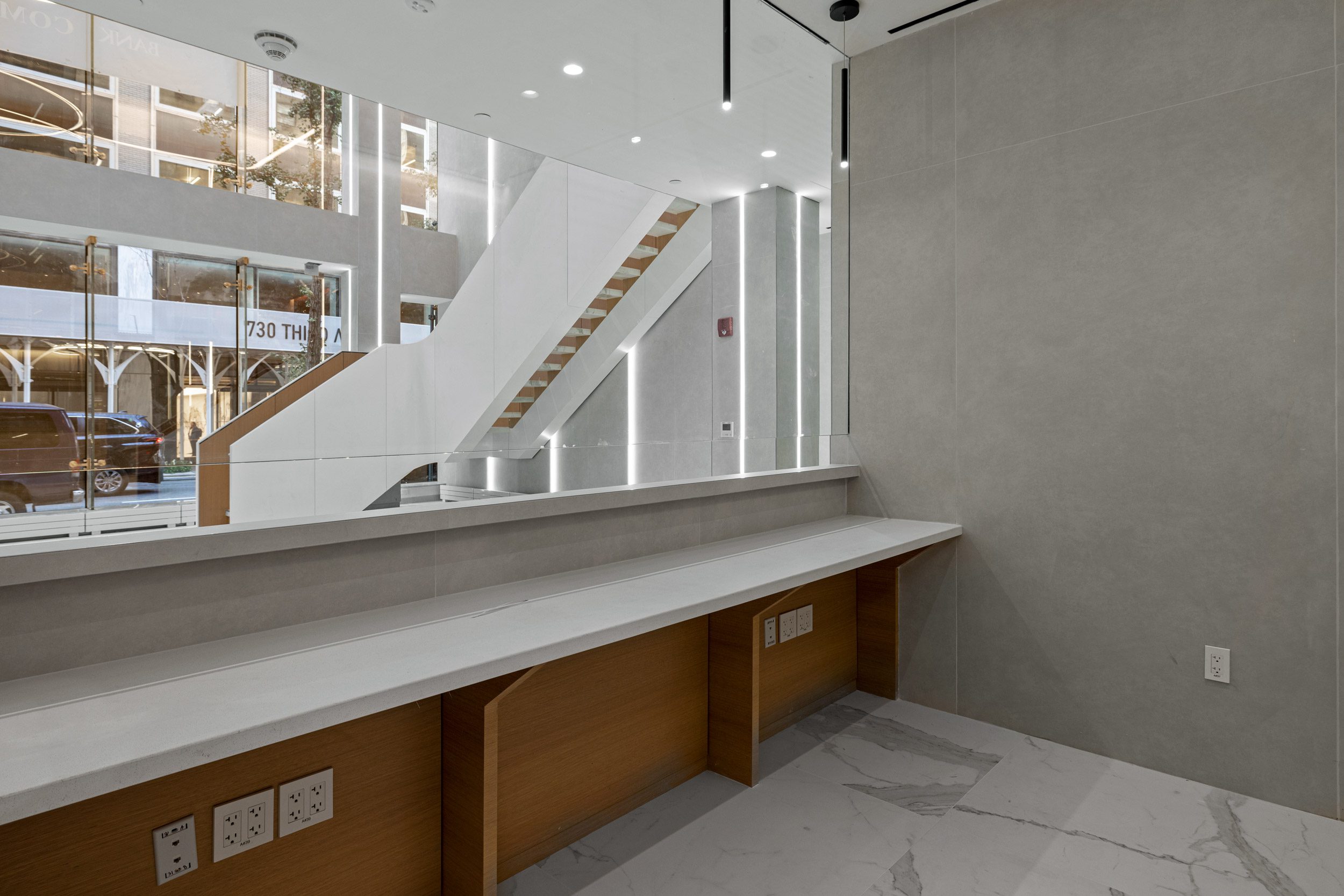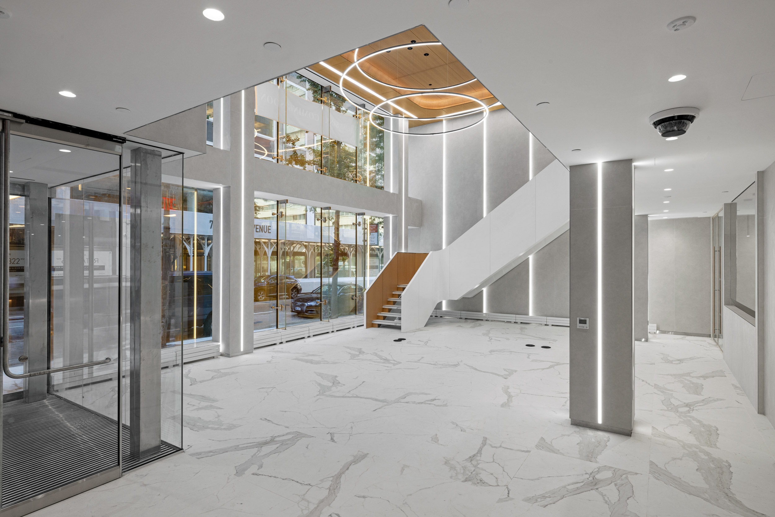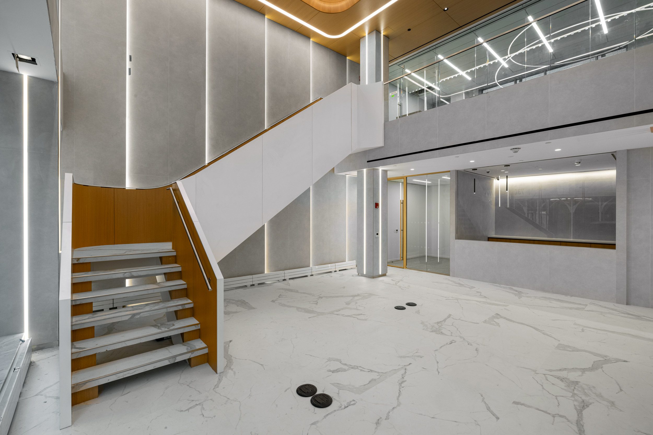 A full repositioning project to transform this 7-story commercial building in Midtown Manhattan was completed in 2023. The finished product creates a modern and unique NYC headquarters for HAB Bank. A complete renovation of both the building façade and the interior was carried out, and the roof mechanical system was removed and replaced. The double height atrium in the lobby boasts a bright space with feature staircase, mezzanine and intricate ceiling detail. This renovation was an ICAP project.