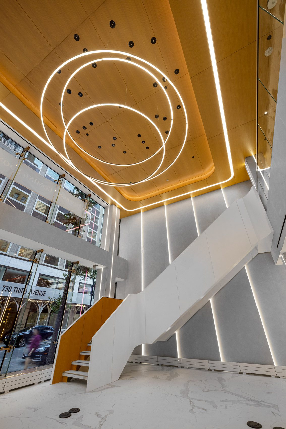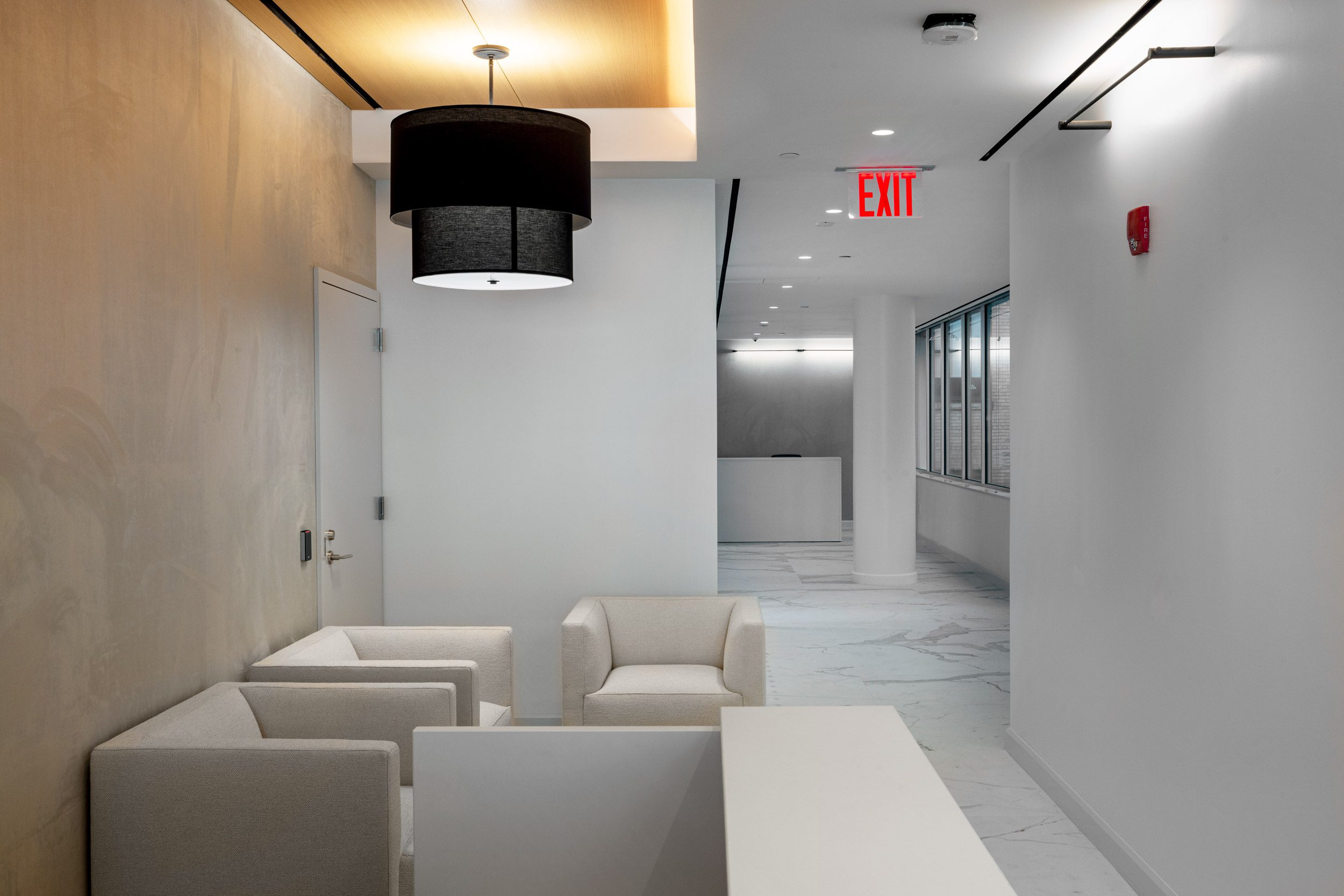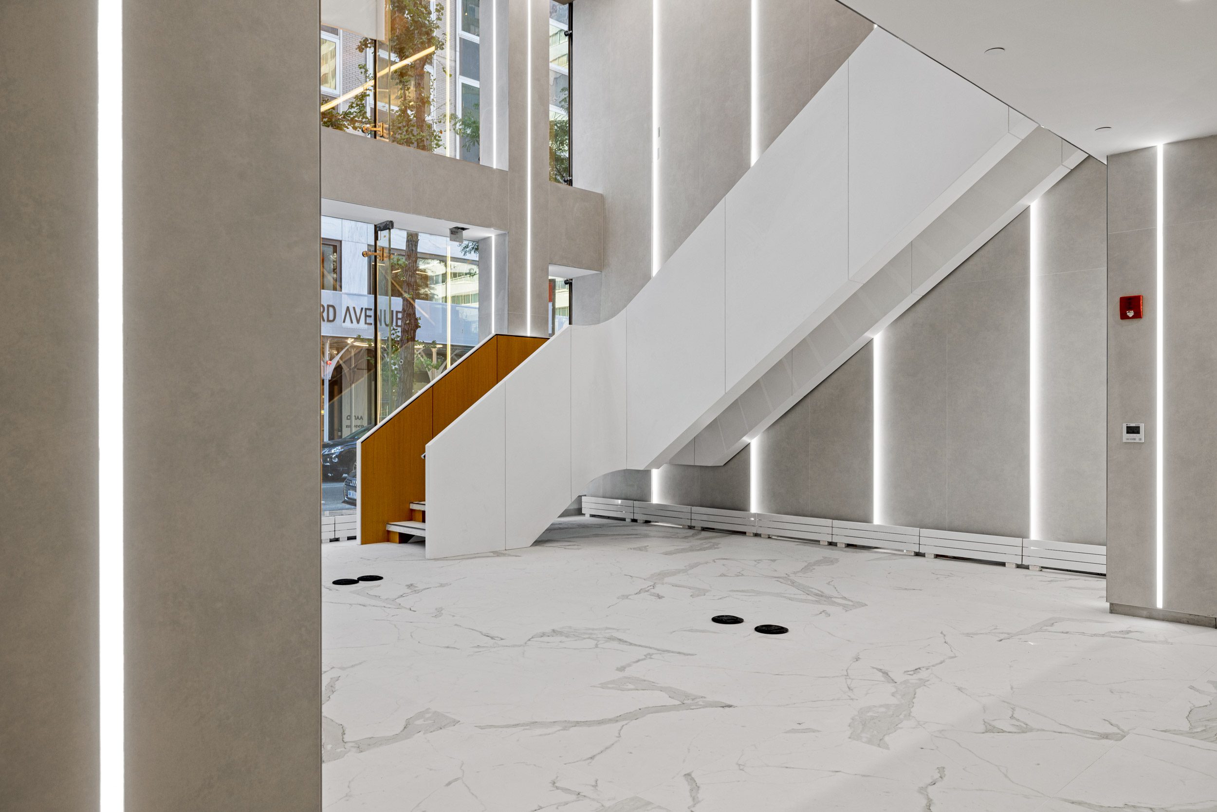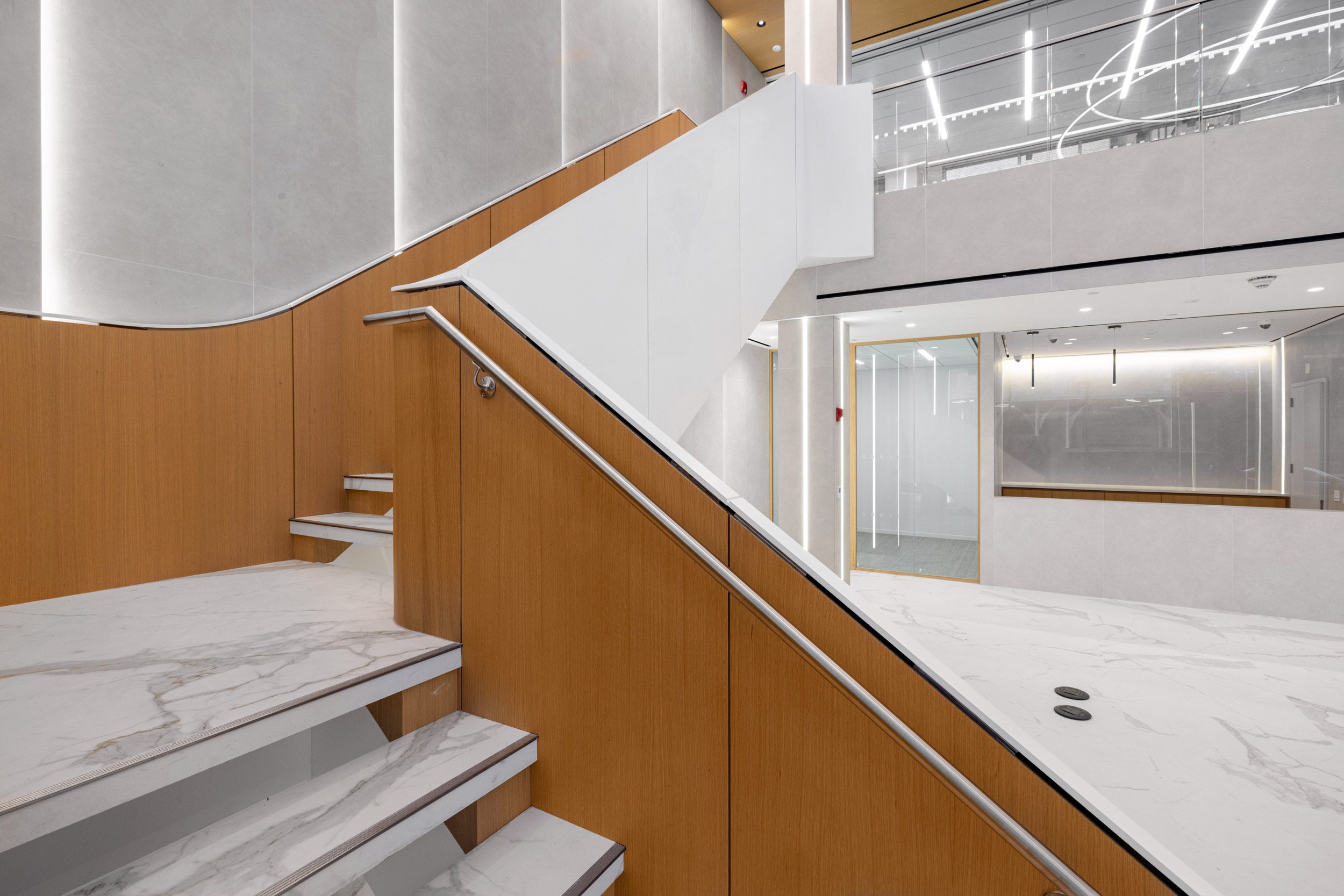 A full repositioning project to transform this 7-story commercial building in Midtown Manhattan was completed in 2023. The finished product creates a modern and unique NYC headquarters for HAB Bank. A complete renovation of both the building façade and the interior was carried out, and the roof mechanical system was removed and replaced. The double height atrium in the lobby boasts a bright space with feature staircase, mezzanine and intricate ceiling detail. This renovation was an ICAP project.