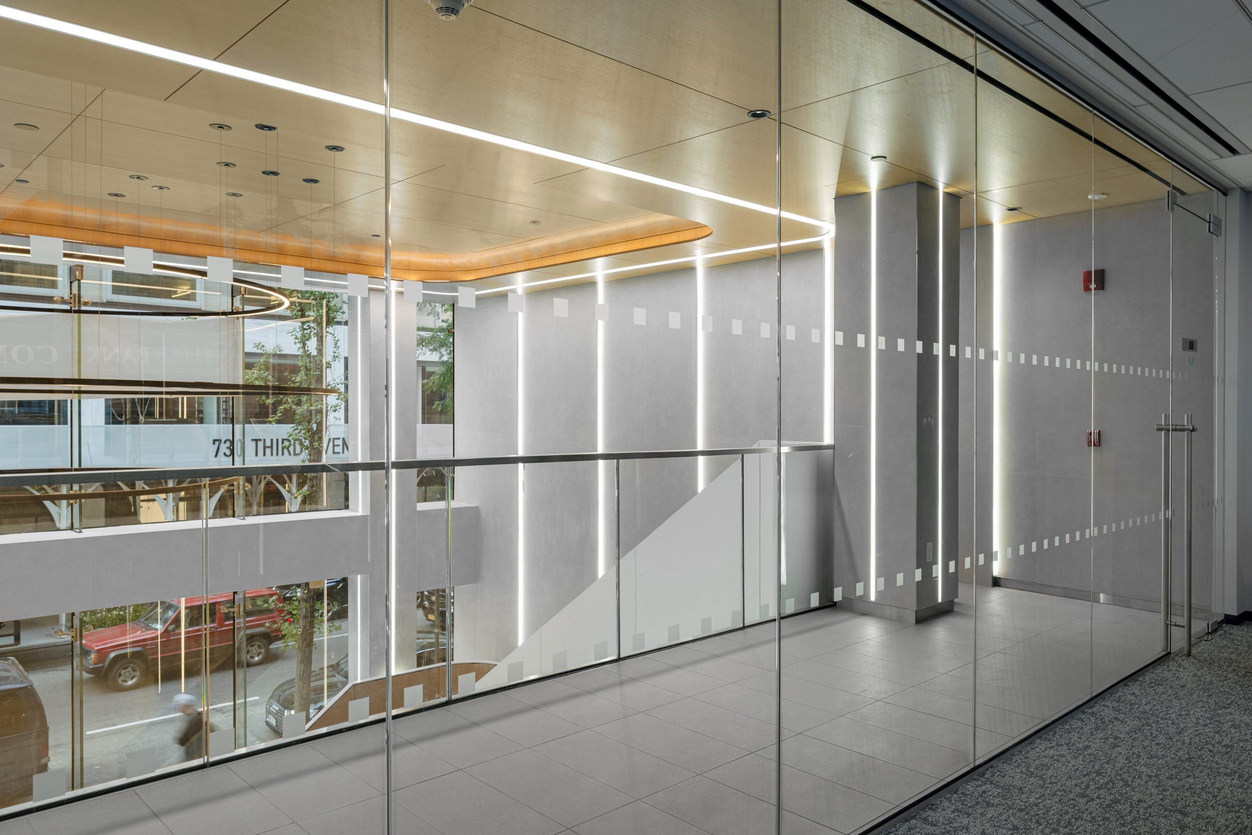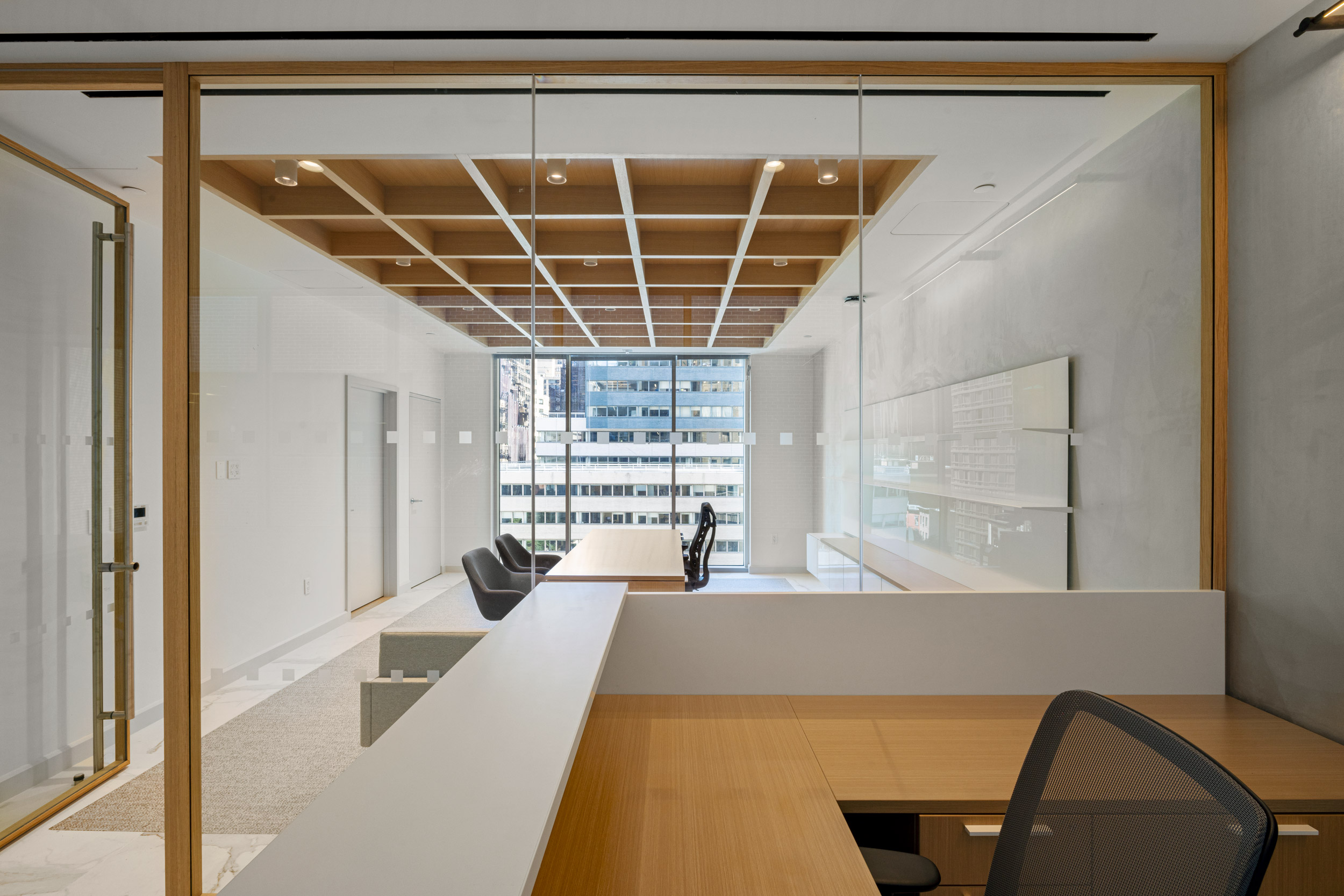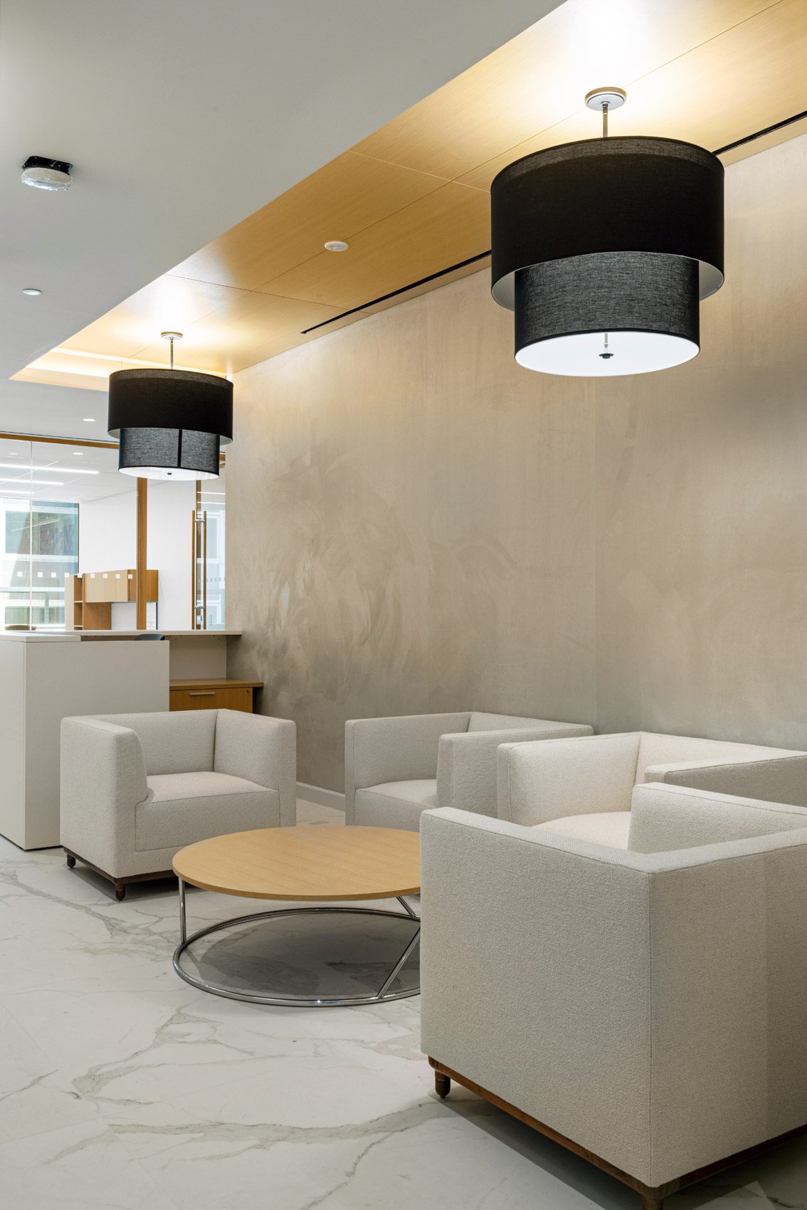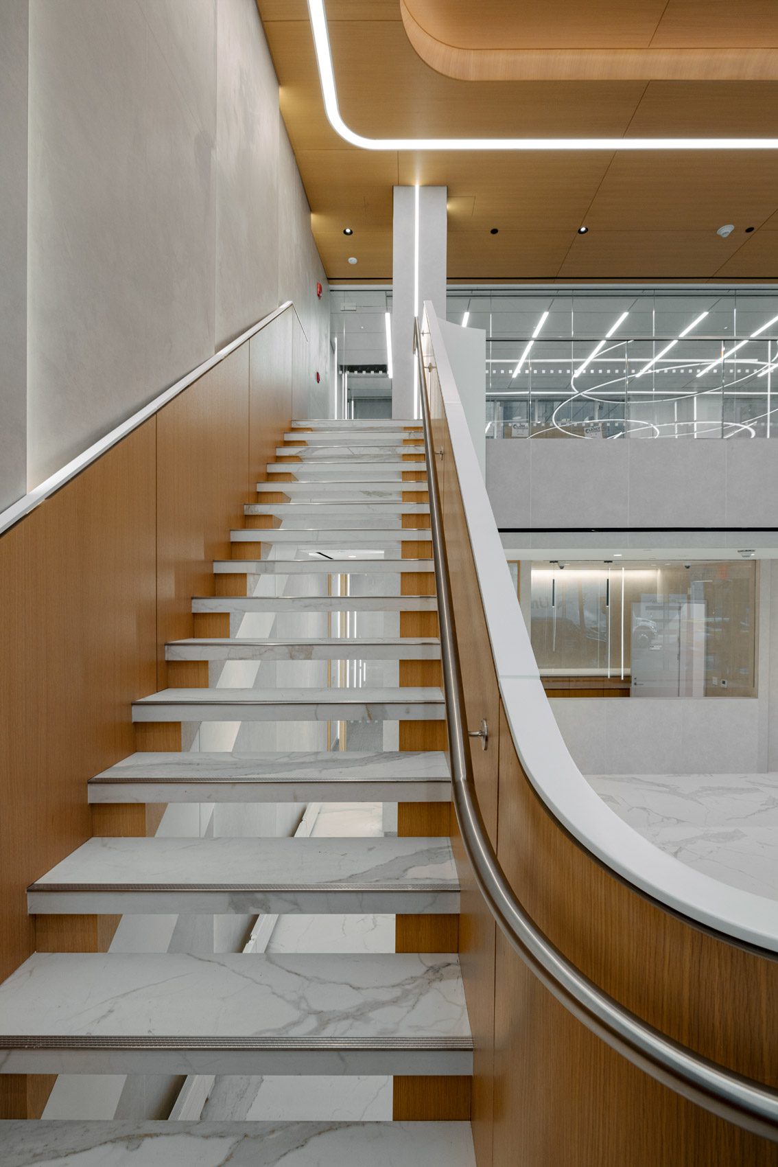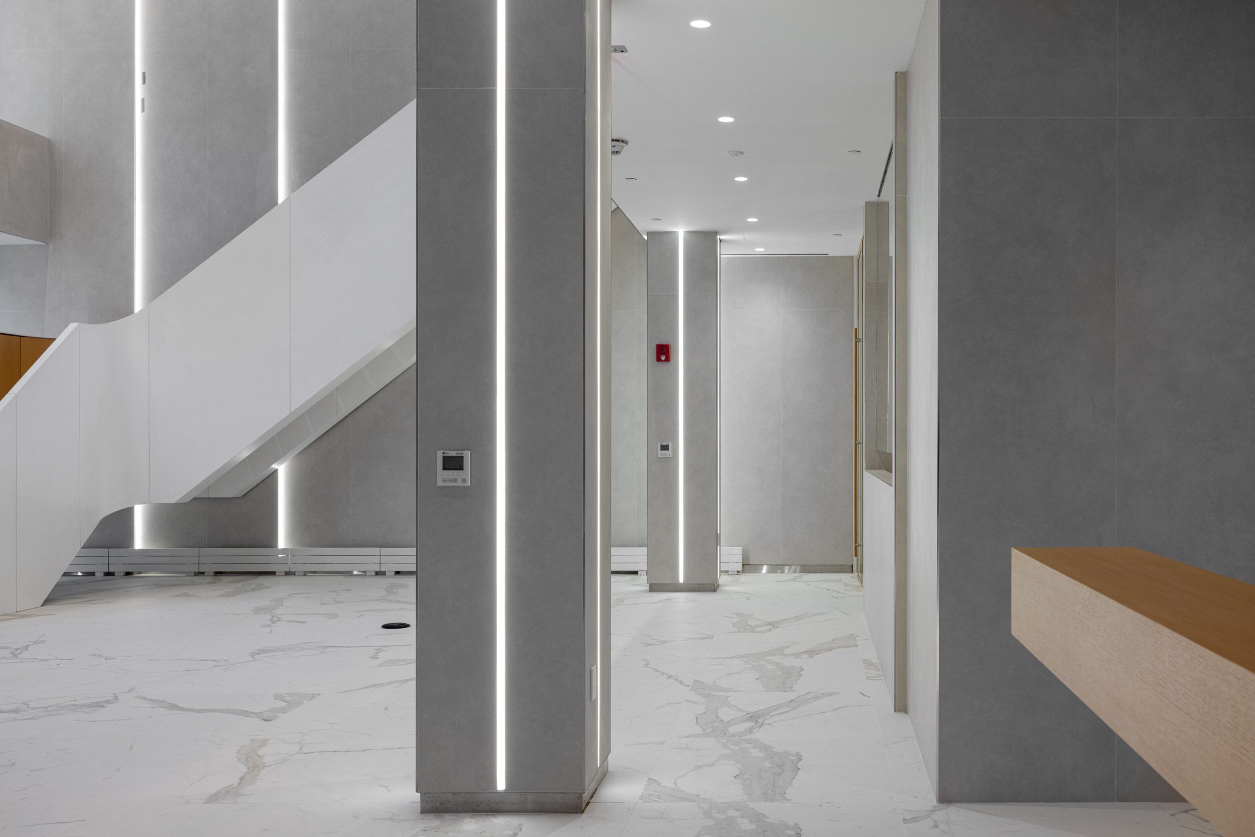 A full repositioning project to transform this 7-story commercial building in Midtown Manhattan was completed in 2023. The finished product creates a modern and unique NYC headquarters for HAB Bank. A complete renovation of both the building façade and the interior was carried out, and the roof mechanical system was removed and replaced. The double height atrium in the lobby boasts a bright space with feature staircase, mezzanine and intricate ceiling detail. This renovation was an ICAP project.