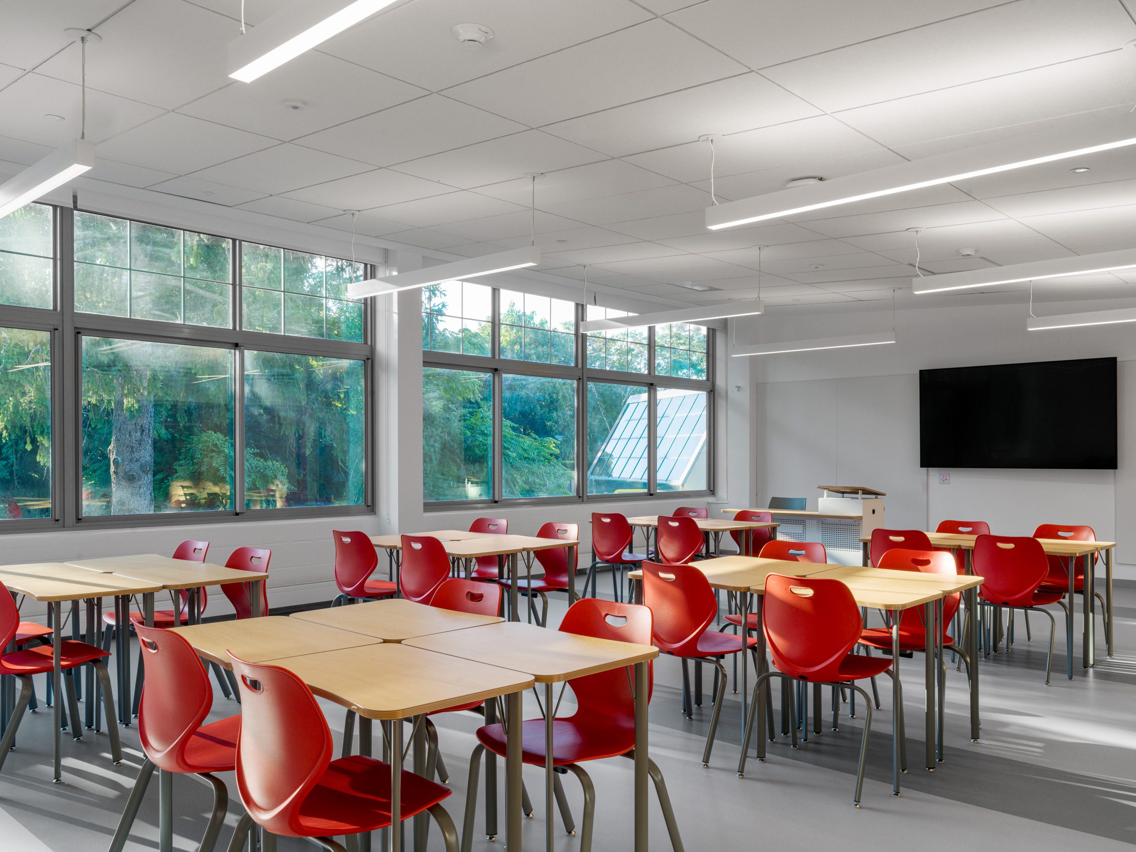 Since LuHi opened, faculty has been educating and shaping compassionate, well-rounded young men and women through a rigorous academic program, and a kind and nurturing community. The renovation of the Upper and Middle School Classroom Building will include modernization and reconfiguration of classrooms and faculty spaces, new mechanical systems and the introduction of an elevator to provide ADA accessibility. This project is the first in series of potential projects to be advanced by the school as part of a comprehensive campus master plan. The approximately 30,000sf of interior space will receive all new finishes and lighting, furniture, and window treatments suitable to the student age and uses. MEP upgrades include installation of new heating/cooling units, sprinkler coverage in entire building, and new exhaust fume hoods in STEM classrooms. Exterior work includes new window and façade installation at specific elevations.